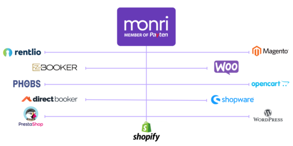 Системот за онлајн плаќање на Monri е веќе поврзан со водечките системи за резервации на хотели и ситеми за управување со канали (booking и channel manager системи), како што се PHOBS, Rentilo, Direct booker, EZ Booker и Nakumo, што овозможува едноставен и брз почеток на работа без процес на интеграција.